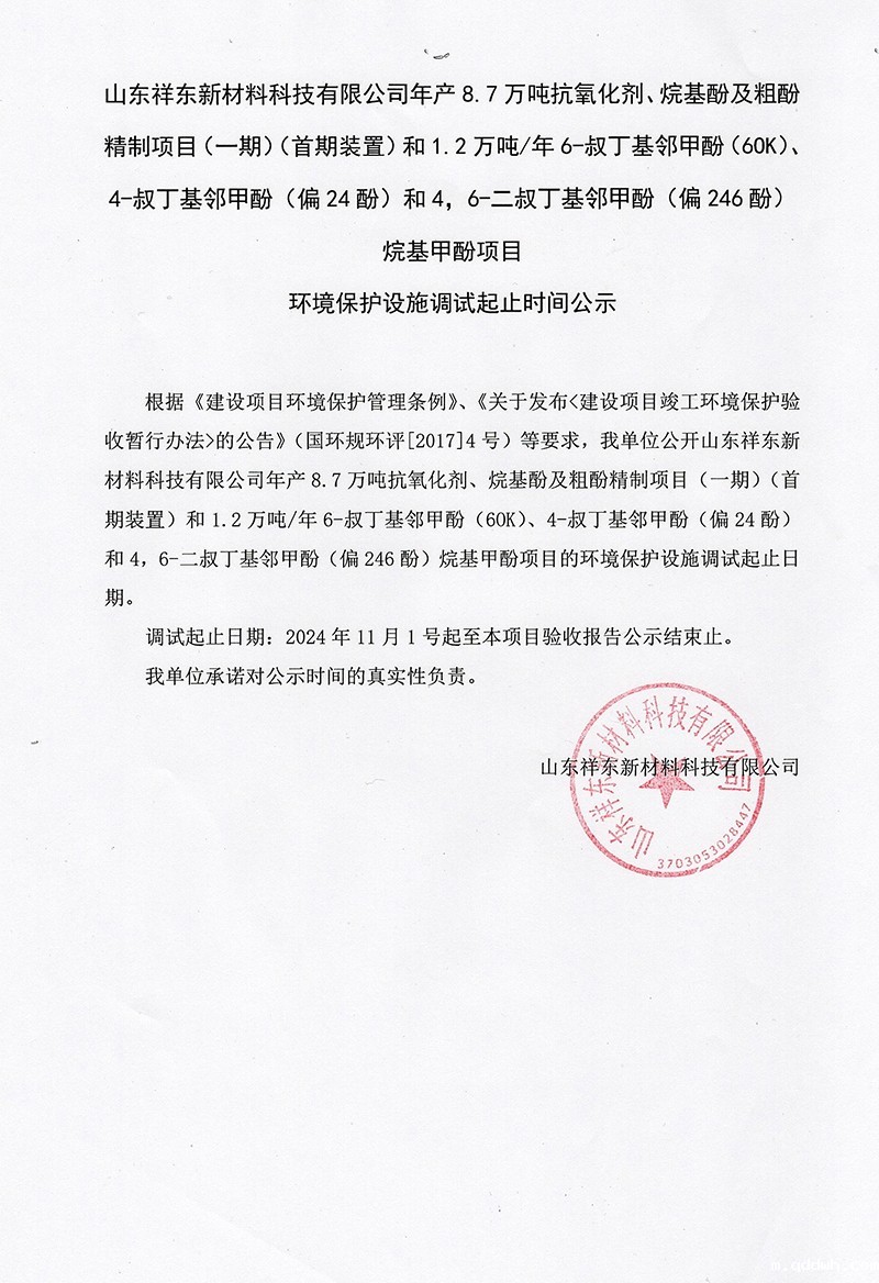 星空娱乐棋牌v1.1.0游戏1.2万吨/年6-叔丁基邻甲(60K)、4-叔丁基邻甲酚(偏 24 酚)和 4,6-二叔丁基邻甲酚(偏 246 酚)烷基甲酚项目竣工环境保护验收监测报告